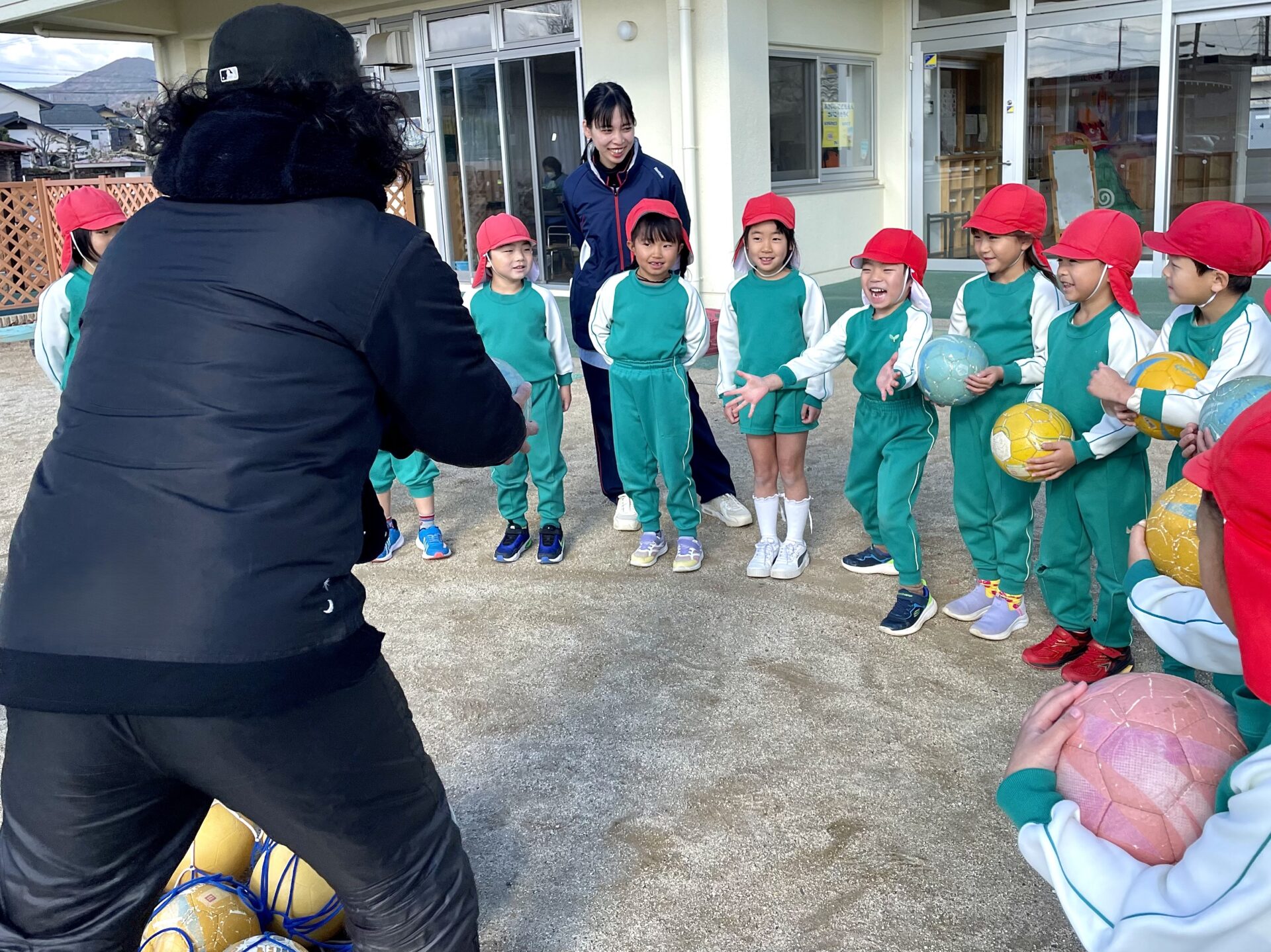 「あ~!落ちる~!」「おっとっと!」と苦戦していた子もいましたが、諦めずに練習を重ねるうちに、だんだんとボールの扱いが上手になっていきました