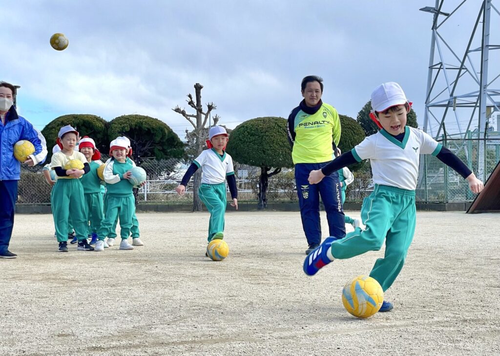 年長さんのこどもたちがサッカーを教わりました⚽✨サッカーが得意でこの時間をずっと楽しみにしていた子や、これまであまりサッカーをした経験が無くちょっぴりドキドキしていた子と様々でしたが、ボールが一人ひとりの手に渡ると、どの子もとってもわくわくしていました✨みんなで元気いっぱいにごあいさつをしてサッカー教室スタート😊