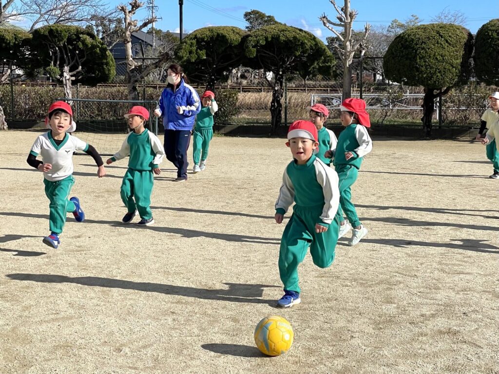 みんなが一番楽しみにしていた試合の時間がやってきました✨早速2チームに分かれて試合開始!⭐スタートと同時にみんな一斉にボールへ向かって走ります✨果敢に攻めてゴールを目指そうとしますが、なかなかゴールが決まりません!それでもどの子も足を止めることなく最後まで一生懸命ボールを追いかけて積極的に参加していました😊🌟サッカーの楽しさや難しさを教わることができた日になったと思います😊✨